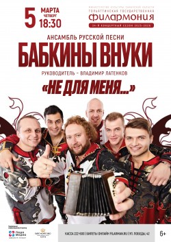 Ансамбль русской песни из Брянска «Бабкины внуки» выступит в Тольяттинской государственной филармонии. Прозвучат песни, которые народ поет уже десятки и даже сотни лет: «Когда мы были на войне», «Донские казаки», «Роза», «Не для меня», «Ой, то не вечер» и другие. «Бабкины внуки» поют исключительно «вживую», возрождая и традицию пения а-капелла.