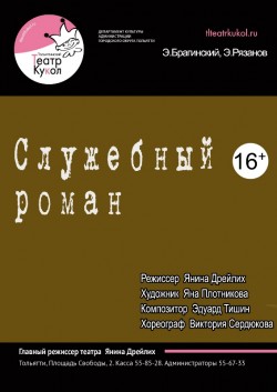 Тольяттинский театр кукол приглашает зрителей старше 16 лет насладиться уникальным спектаклем "Служебный роман", вдохновленным знаменитой пьесой Эльдара Рязанова и Эмиля Брагинского "Сослуживцы". Впервые зрители увидят легендарную комедию в совершенно новом исполнении — на сцене театра кукол.